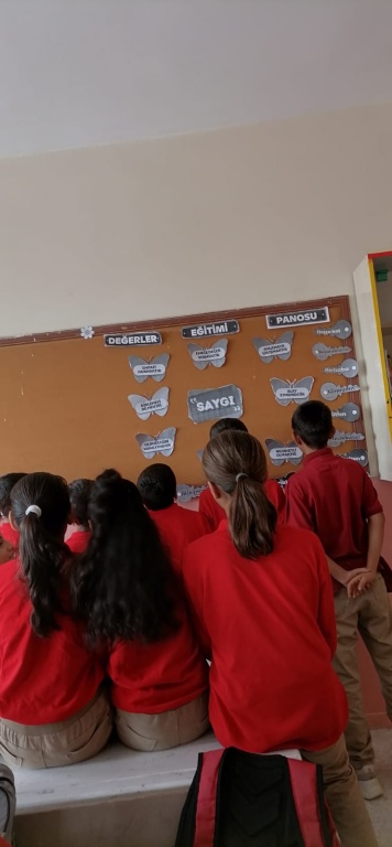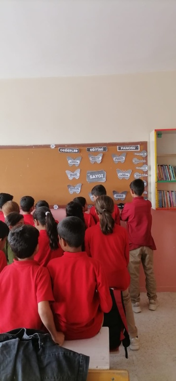 bu hafta ekim ayının değeri olan saygı üzerinde duruldu. Okul Psikolojik Danışmanımız Hacer ADA öğrencilerle saygı üzerine fikir taraması yapmıştır. fikir taramasının ardından bir drama çalışması yaparak kelimenin pekişmesine imkan sağlamıştır. son olarak öğretmenimiz ve öğrenciler sınıf panosunun ayın değerine uygun olarak süslemişlerdir.